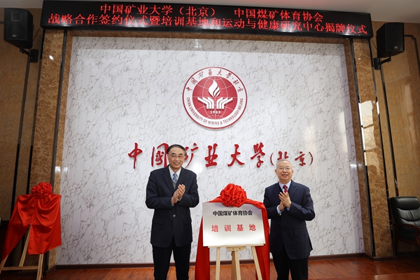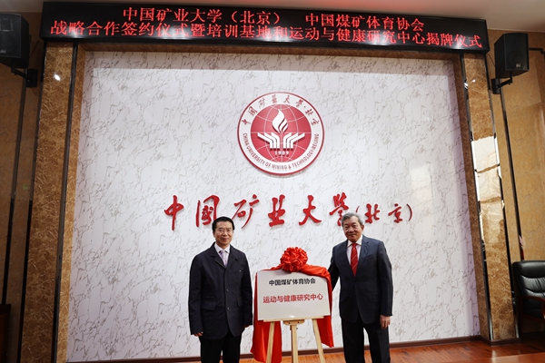 随后,葛世荣与王虹桥共同为中国煤矿体育协会培训中心揭牌。王忠强与戴璐强共同为中国煤矿体育协会运动与健康研究中心揭牌,并签署中国矿业大学(北京)与煤矿体育协会战略合作协议。
