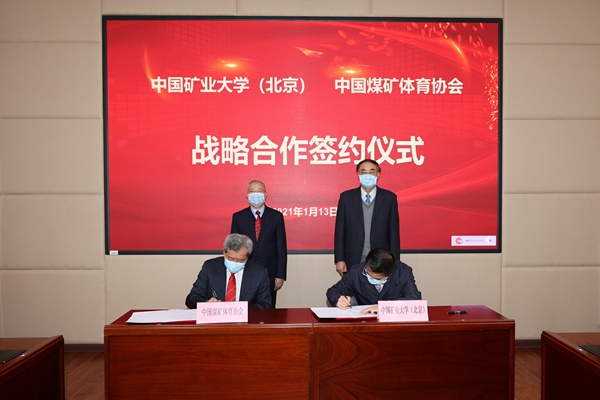本网讯 1月13日下午,在一号办公楼200会议室,中国矿业大学(北京)与中国煤矿体育协会战略合作协议签约暨培训基地和运动与健康研究中心揭牌仪式举行。中国煤炭工业协会副会长王虹桥,中国煤矿体育协会主席戴璐强、副主席兼秘书长包双林,我校校长葛世荣,校党委副书记王忠强,以及双方有关部门负责人等出席活动。