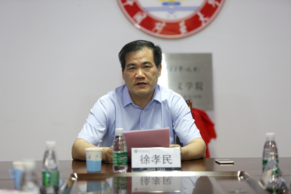 徐孝民强调,马克思主义学院师生要胸怀大局、着眼大事,服务党的意识形态工作大局,用“五大发展理念”引领学院建设。正确认识和把握大学生思想政治教育、高校思政课、马克思主义理论学科发展的三大规律,进一步提高教学、科研和社会的服务能力。要站在高地、守住阵地,在思想上有使命自觉,在实践上有行动自觉,巩固马克思主义在意识形态领域的指导地位。在原则问题上旗帜鲜明、立场坚定,真正姓马、信马、兴马。要精准发力、提升实效,办好思政课是首要任务,建设马克思主义理论学科是重要支撑,建强自身建设是坚实基础,着力推进学院工作在改革中加强、在创新中提高,将作为马克思主义学院寻求内涵式发展的核心要求。