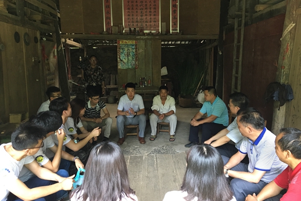 29日下午,实践团一行和都安县、龙湾乡、琴棋村的相关领导召开“精准扶贫”座谈会。我校挂职干部、琴棋村第一书记孙铭晗,琴棋村党支部书记兼村委会主任黄炳康汇报了近年来琴棋村的脱贫攻坚工作、我校开展的定点帮扶项目和运营百香果园合作社技术上的诉求,其中黄炳康代表全体村民向中国矿业大学(北京)对琴棋村的深情厚谊和大力帮扶表示衷心的感谢。龙湾乡常务副乡长韦崇凯、都安县人大常委会副主任梁林分别就龙湾乡和都安县的基本情况、贫困原因和脱贫方式等作了详细介绍。校团委书记张蕊表示琴棋村是我校定点帮扶的贫困村,实践团的学生代表将尽最大努力对琴棋村提出的诉求展开帮助。王忠强在会上指出,尽管学校目前面临新校区建设的经济困难,但学校依然会坚持落实党中央和教育部安排的定点扶贫工作,尽最大的能力在选派干部挂职、捐资修路、教育资助、产业发展等方面提供帮扶。他强调,希望中国矿业大学(北京)“艰苦奋斗的创业精神和迎难而上的拼搏精神”与都安县“雄心征服千层岭,壮志压倒万重山”的都安精神休戚与共,双方共同努力改变琴棋村贫困面貌,争取如期脱贫摘帽,与全国人民同步小康。