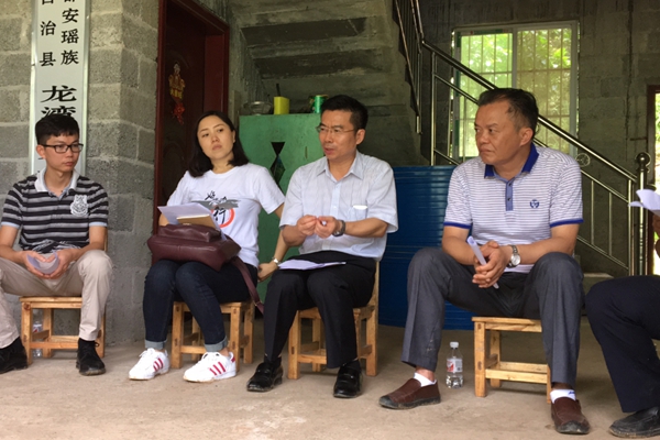 本网讯 6月29日,中国矿业大学(北京)党委副书记王忠强、团委书记张蕊,以及10名学生党员代表来到学校定点帮扶的广西都安瑶族自治县龙湾乡琴棋村开展“精准扶贫”主题党日活动。都安瑶族自治县人大常委会副主任梁林、学校派驻到广西都安挂职县长助理的谢均岩和出任琴棋村驻村党组织第一书记的孙铭晗陪同走访调研,并与琴棋村村两委干部和党员代表一同参加了党日活动。