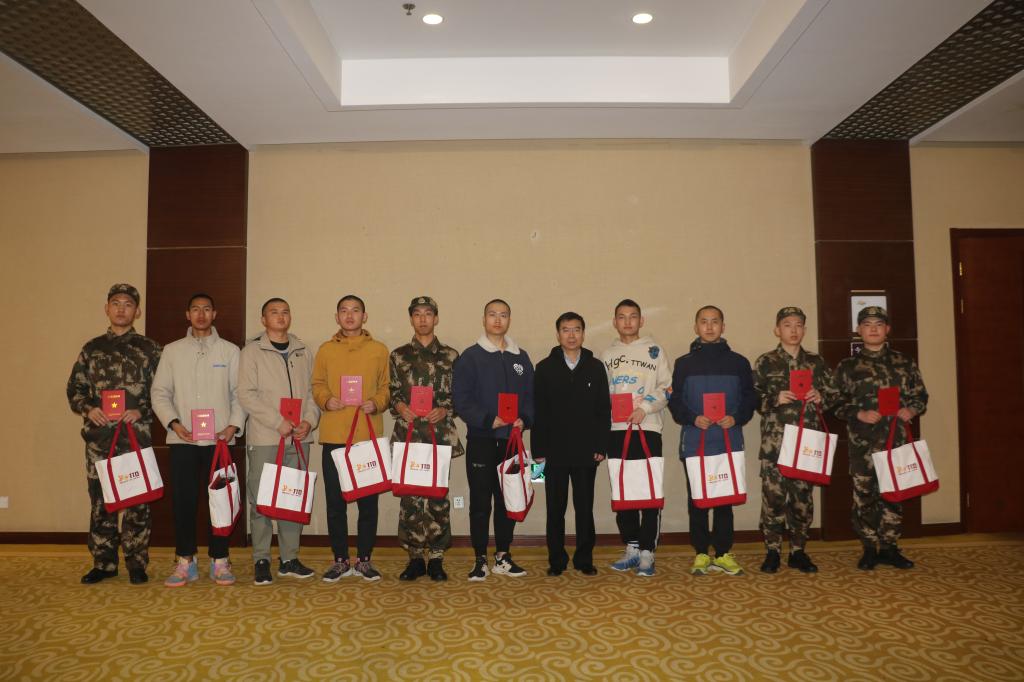 王忠强代表学校向经过层层筛选即将入伍的各位同学表示热烈的祝贺。他希望同学们到部队后一定要不忘初心,积极适应军队生活,主动融入军队严格的训练,不断突破自我,磨炼坚强的意志品质;二要将专业知识和个人岗位结合在一起,充分发挥自己的聪明才智,做好本职工作,为军队建设贡献自己的智慧;三是要严格遵守部队的规章制度,服从命令、听从指挥,积极向党组织靠拢,全面提升自己,向优秀矿大老兵学习,争做一名优秀士兵。最后,他祝新兵同学们一路顺风,早传捷报。