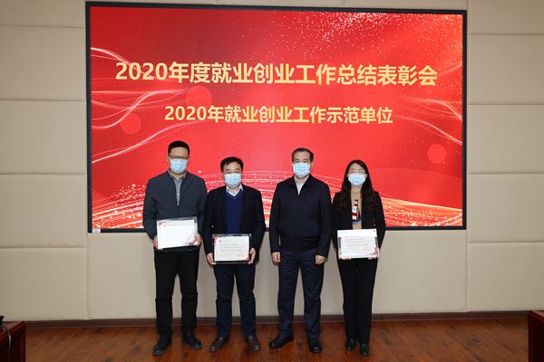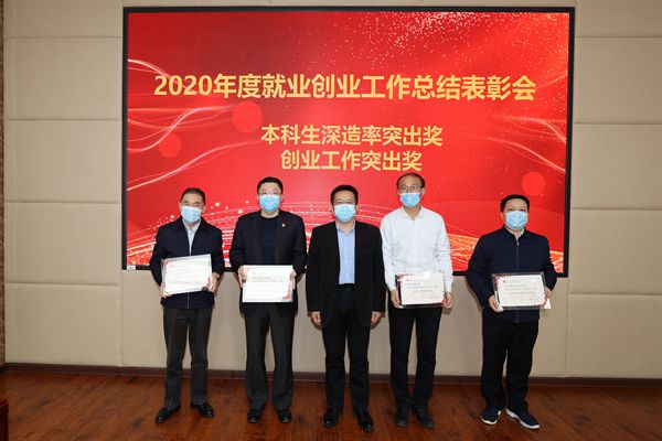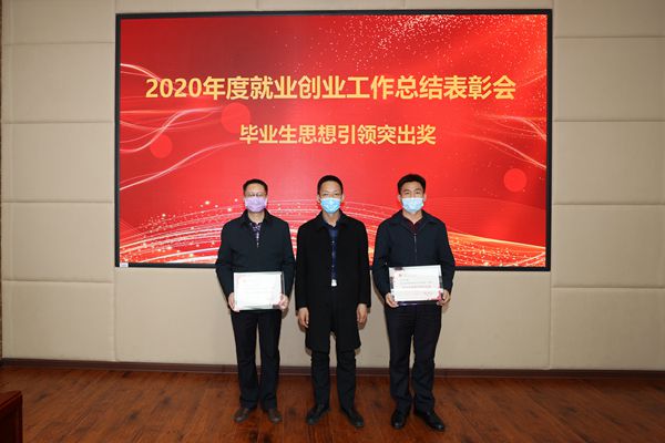 徐孝民为获得“2020年就业创业工作示范单位”的学院颁发了奖牌,王家臣、刘波、崔希民为获得就业创业工作集体单项奖的学院和就业创业工作先进个人颁发了奖牌和荣誉证书。