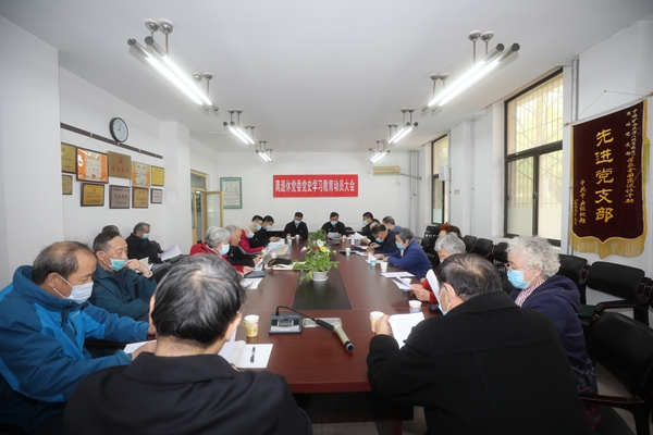 刘社育传达了校党委书记徐孝民在学校党史学习教育动员大会上的讲话精神,同时结合离退休党委研究制定的党史学习教育工作方案,进行了动员部署。要深刻认识开展党史学习教育的重大意义,把学习习近平新时代中国特色社会主义思想贯穿始终,把“学史明理、学史增信、学史崇德、学史力行”贯穿始终,把“学党史、悟思想、办实事、开新局”贯穿始终。