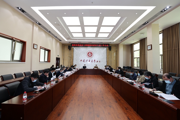 本网讯 4月14日上午,学校在1号办公楼200会议室召开教师思想政治与师德师风建设专项工作会议。校党委书记徐孝民,校长、党委副书记葛世荣出席会议并讲话,副校长崔希民主持会议。各学院、部负责人参加会议。