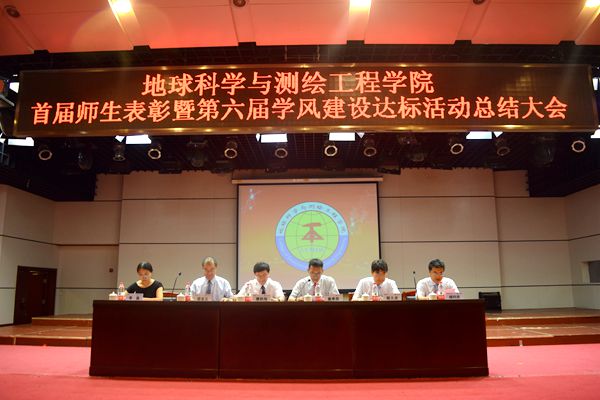 本网讯 6月13日晚,地球科学与测绘工程学院首届师生表彰暨第六届学风建设达标活动总结大会在科技会堂报告厅举行。学院相关负责人、各系教师、辅导员、获奖集体及个人共800余人参加了会议。大会由院党委副书记杨向东主持。