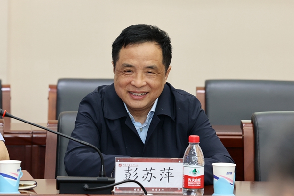 彭苏萍院士介绍了我校高水平科研平台的具体情况,他希望双方在矿山修复、资源综合利用、新能源开发等多个方面开展深入合作。