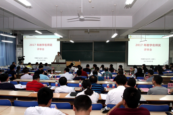 本网讯 6月5日,按照学校党委常委会、校长办公会研究批准的《中国矿业大学(北京)校级教学名师奖评选办法(试行)》文件要求,教务处组织专家对2017年教学名师奖进行了评审。这是我校首次评选校级教学名师奖,旨在表彰长期在教学一线从事教学工作、注重教学改革实践、教学水平高、教学效果好的优秀教师,进一步提高我校师资队伍整体水平和人才培养质量。会议还推荐了第十三届北京市教学名师奖、首届北京市青年教学名师奖候选人。副校长王家臣出席并主持。教务处处长刘波就评审规则向评审委员会做了说明。评审委员会由专家评委和学生评委组成。专家评委包括教务处、研究生院、人事处、学工处、纪委监察处等部门负责人,各学院院长、分管教学副院长等。包括九个学院推选的学生评委、观摩教师和观摩学生等共120余人参加了评审会。