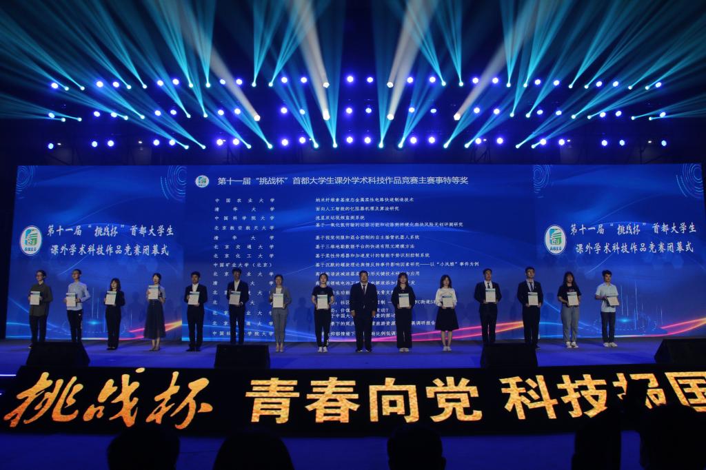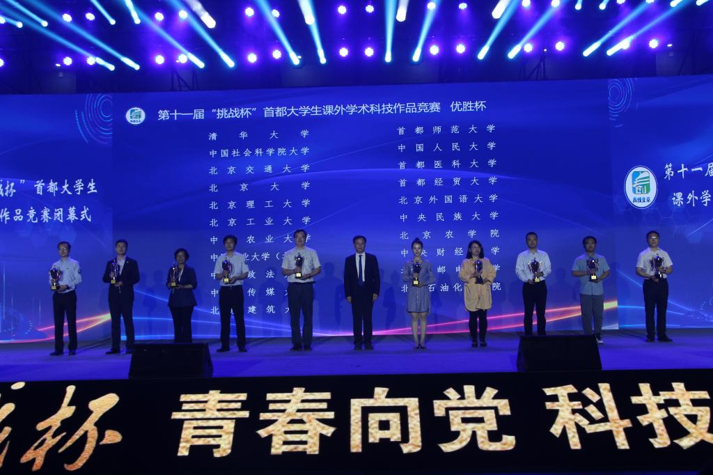 我校选送参加首都“挑战杯”主赛事的15件作品中有14个获奖,其中7件作品晋级决赛特等奖答辩,最终取得特等奖2项、一等奖2项、二等奖3项和三等奖7项,获得3个晋级国赛名额,团体总分位列北京前十,首次捧得首都“挑战杯”竞赛“优胜杯”,荣获“优秀组织奖”。