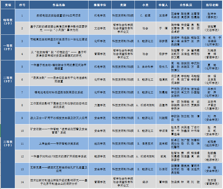 本次比赛充分展示了矿大学子好学力行、拼搏进取、迎难而上的精神面貌,体现了矿大青年追逐科技浪潮、勇攀科技高峰的创新热情,产生了良好的创新示范引领效应。下一步,学校将继续努力备战“挑战杯”全国大赛,力争再次取得新突破。