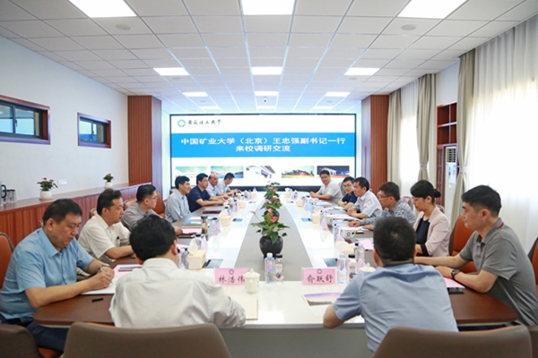 虞宝桃对王忠强一行的来访表示欢迎,他从校史沿革、学科建设、师资队伍、人才培养、科学研究、文化传承与创新、国际交流与合作、发展战略、目标愿景等方面介绍了安徽理工大学的发展情况。他表示中国矿业大学(北京)的办学历史悠久,在同行业高校中优势明显、特色鲜明,希望双方进一步加强交流与合作,携手共进,共同为新时代高等教育事业发展做出新的更大贡献。