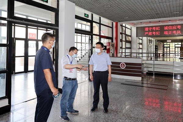 考试期间,副校长刘波带领有关职能部门负责人到现场检查指导工作。先后检查了两个校区的考点现场、考务办公室、视频监控室,详细查看各项考务组织、设备运行和疫情防控细节,480余名监考、巡考、考务、疫情防控、安检保卫、后勤保障等工作人员参与了此次考试考务工作。