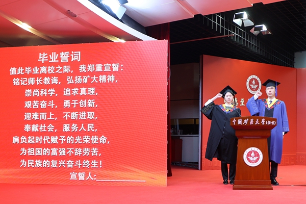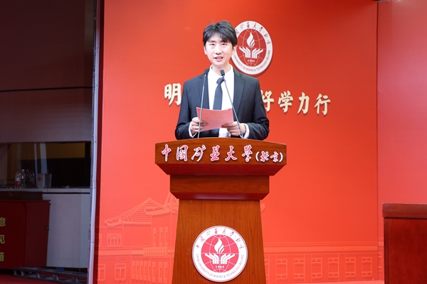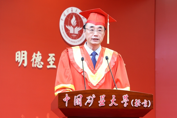 教师代表、能源与矿业学院副院长杨胜利在发言中表示,同学们即将从中国矿业大学(北京)起航,奔赴实现青春梦想的新征程。民族复兴的光荣梦想正在前所未有地接近我们,绚丽多彩的奋斗篇章正等待我们去书写。