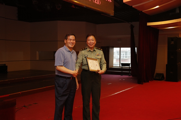 徐孝民代表学校为徐焰将军颁发北京市思想政治理论课特聘教授的荣誉证书