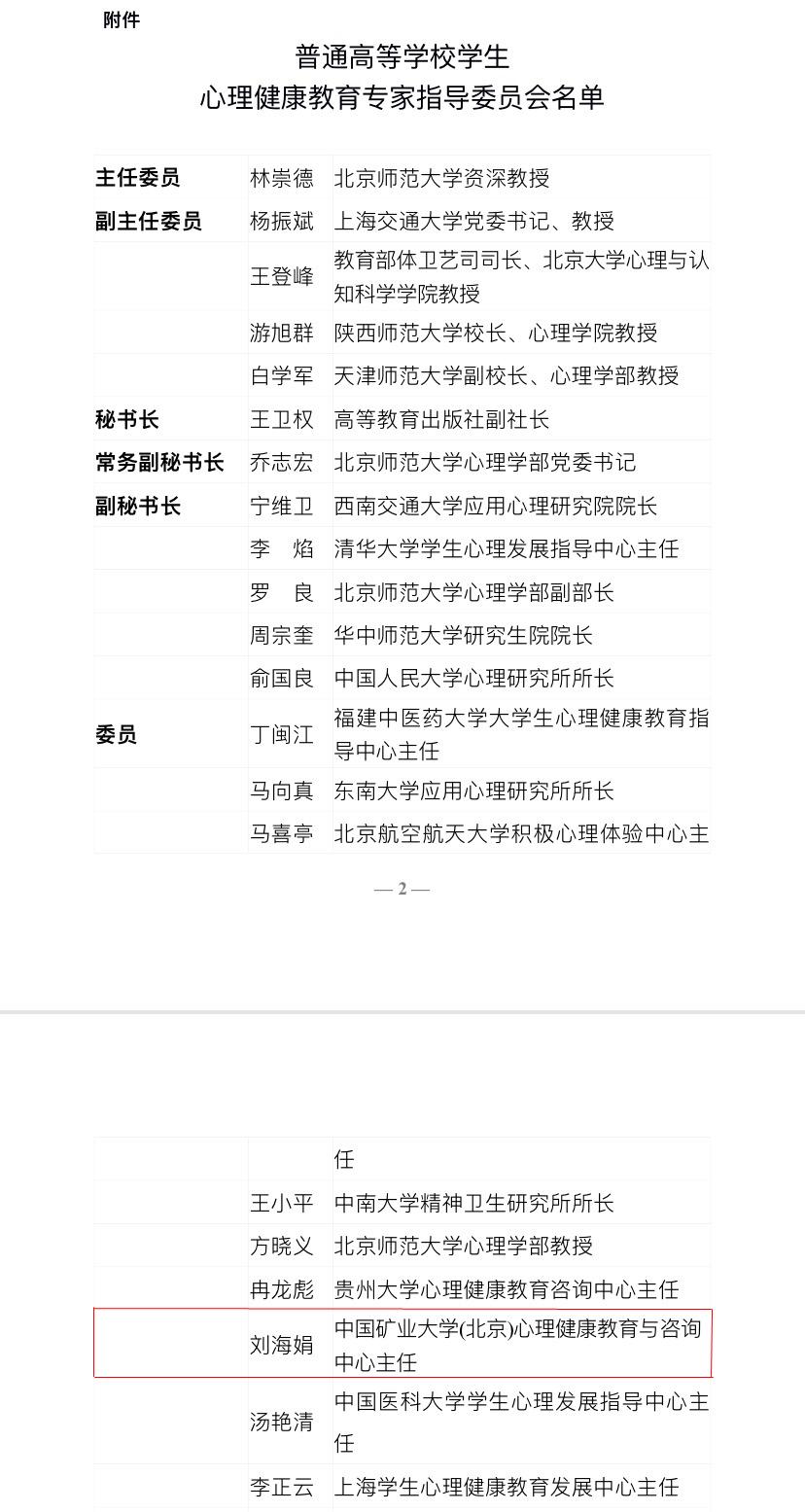 我校教师刘海娟入选教育部普通高等学校学生心理健康教育专家指导委员会