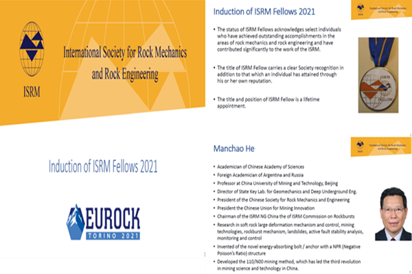 何满潮院士荣获国际岩石力学与岩石工程学会(ISRM)会士荣誉称号和技术发明奖