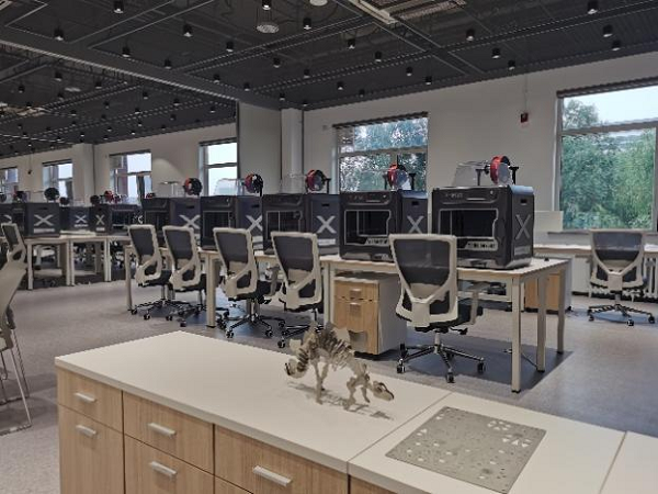 智造创新中心是大学生进行工程认识、工程训练、创新创业训练的教学基地,具有专业教育、通识教育、双创教育三项核心功能,初期建设规划约1500m2。目前,约900m2工程建设顺利完成,完成购置3D打印机25台、激光切割机2台、数控车床5台、数控铣床5台。同时,利用原沙河校区CAD机房,安装了数控加工、激光切割、3D打印及三维造型软件,可实现远程编程。为了让广大同学尽早受益,机电与信息工程学院克服人员和资金紧张等困难,本学期安排2个班学生在中心开展工程训练,同时,面向全校适度开放大学生创新训练,边建设,边运行,边探索,不断积累经验,为后续智造创新中心运行和管理奠定基础。