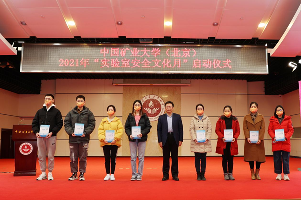 刘波为师生代表颁发2021版《实验室安全管理制度一本通》