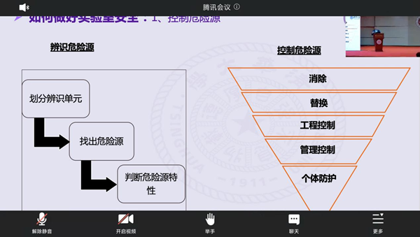 艾德生教授为师生作了题为《高校实验室安全基础与发展的技术逻辑》的专题讲座,他结合高校实验室安全事故案例、教育部检查高校实验室突出隐患问题、清华大学实验室安全管理实操经验,从什么是实验室安全、如何做好安全、安全基础与发展的技术逻辑三方面做了详尽地讲解,线上线下师生受益匪浅、反响强烈,并进行了积极的互动交流。