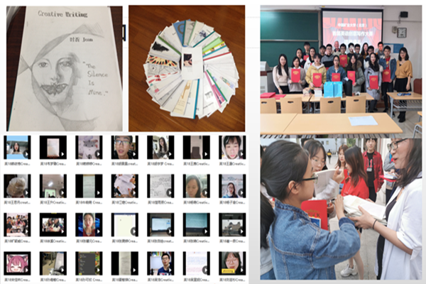 坚持用英语讲好中国故事的教学理念,创意写作课程使写作不再是简单的“课程”加“思政”。10年来,该课程紧紧围绕大学生的英语困境,在教材、资源、方法、效果等方面持续建设,不断改进,成果丰富,注重数字媒介工具的使用,积极探索线上线下混合教学新模式并拥有丰富的多模态教学成果和产出。课程采用“以学生为中心”的工作坊教学法,“以OBE教育理念”为人才培养模式,颠覆传统写作课堂长期无法解决的低效教学困境,成为外语系产出效率和成果量最高的一门课程,取得了可喜的育人成果。