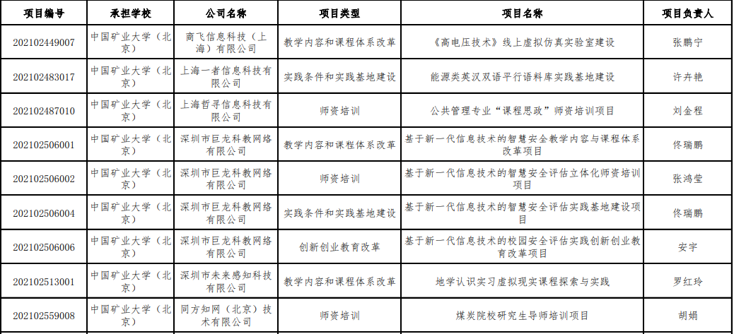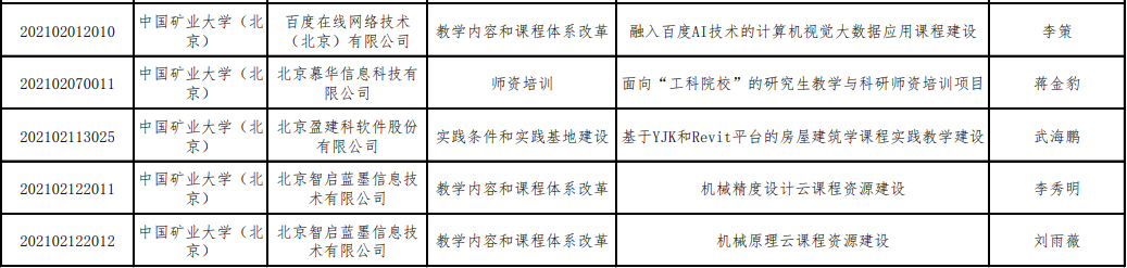 2021年1月,教育部印发《普通高等学校本科教育教学审核评估实施方案(2021—2025年)》,将产学合作协同育人项目纳入新一轮普通高等学校本科教育教学审核评估指标体系。我校积极申报,共获批26项,包括:四新建设1项、师资培训5项、实践条件和实践基地建设8项、教学内容和课程体系改革10项、创新创业教育改革1项、创新创业联合基金1项。