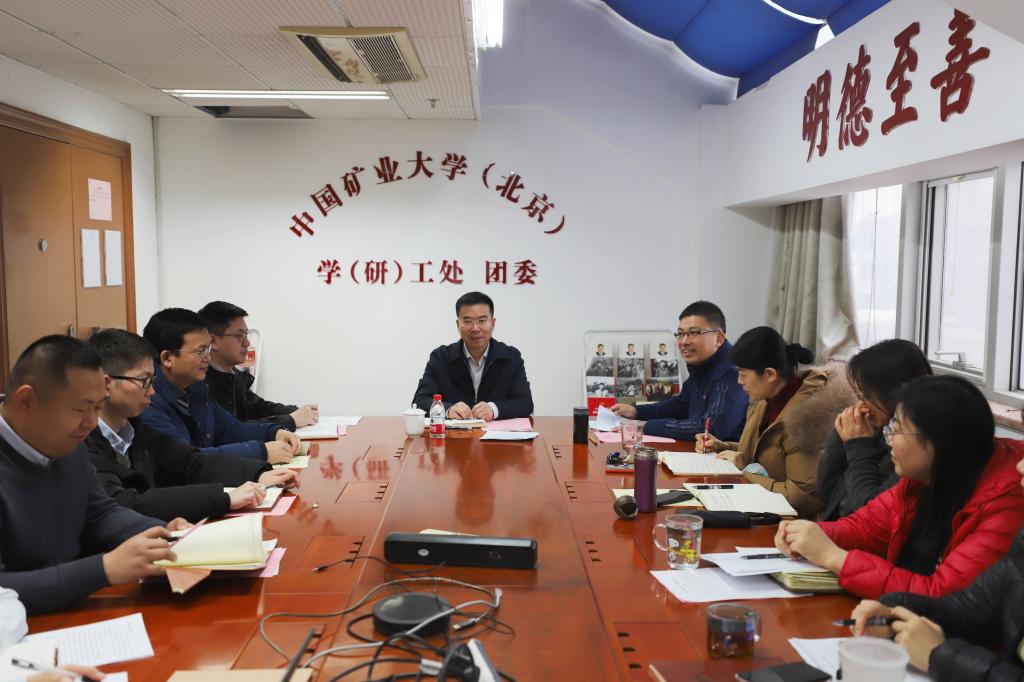 本网讯 12月23日,学工团委联合党支部在3号办公楼508会议室召开了教职工2021年度总结暨民主测评会。校党委副书记王忠强出席会议,学生工作处、校团委全体专职人员参加会议,会议由支部书记安宇主持。