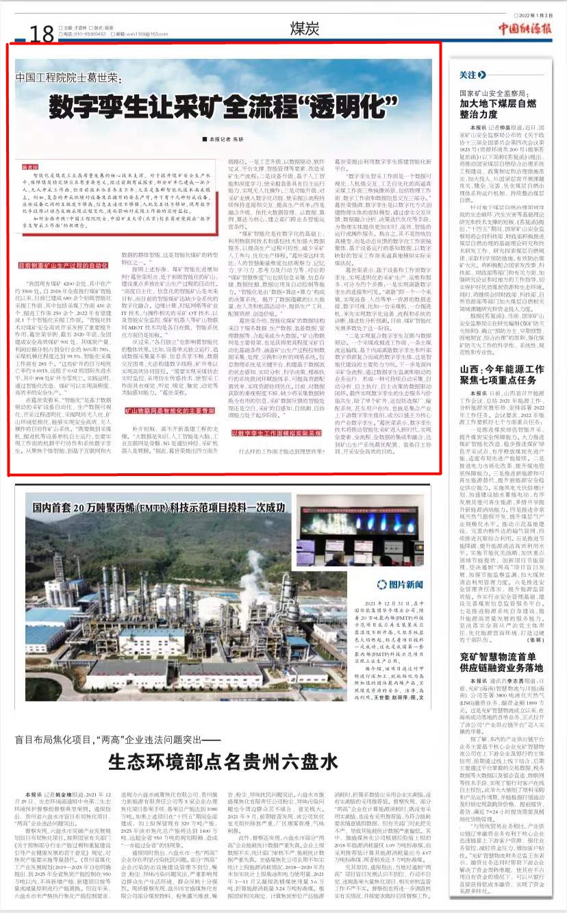 “二是实现复合数字孪生互联与数据驱动。一个采煤或掘进工作面、一条主煤流运输线,基于内部离散数字孪生和外部数字资源复合而成的数字孪生体,这是智能化建设的主要努力方向。下一步是面向采矿全流程,通过数据孪生监测和驱动的业务运行,形成一种可持续自动采集、自动分析、自主执行、自主决策的数据驱动闭环。最终实现数字孪生的生态服务与价值共生,除了单个矿井,还包括选煤厂、输配系统、甚至用户在内,也就是集合产业上下游数字孪生组织,成为以链主为核心的产业数字孪生。”葛世荣表示,数字孪生技术将推动智能化采矿进入新时代,实现全要素、全流程、全数据的集成和融合,达到矿山生产系统最优配置、装备自主协同、开采安全高效的目的。