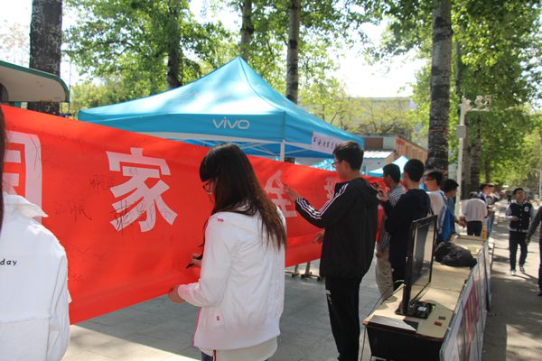 活动现场通过悬挂横幅、摆放国家安全宣传海报、播放关于间谍的相关视频等多种形式,向全校师生宣传了有关于国家安全的知识、如何界定间谍行为的方法,以及对间谍行为的举报途径,并开展了签名活动,保卫处处长赵诚、学工处处长安宇、校团委书记张蕊也参与到活动中。