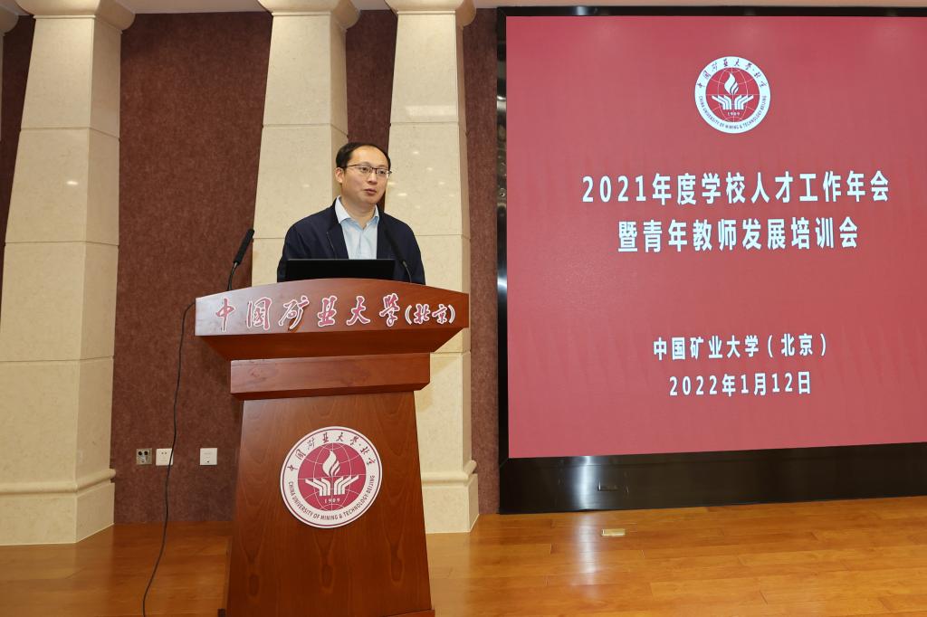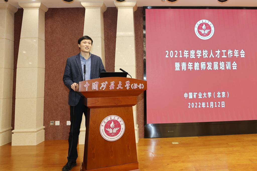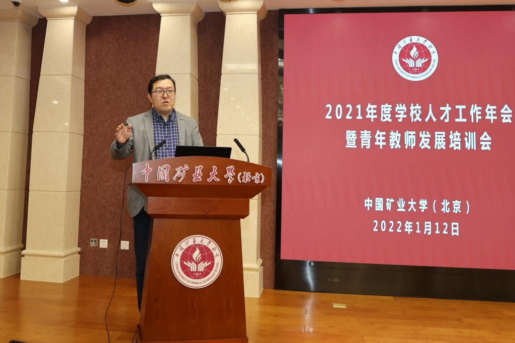 本网讯  1月12日上午,学校在福中苑报告厅召开2021年学校人才工作年会暨青年教师发展培训会。副校长崔希民出席会议并讲话,相关职能处室负人及各教学科研单位负责人参加会议。会议由人事处处长、人才工作办公室主任汪文生主持。近100名青年教师参加了会议。