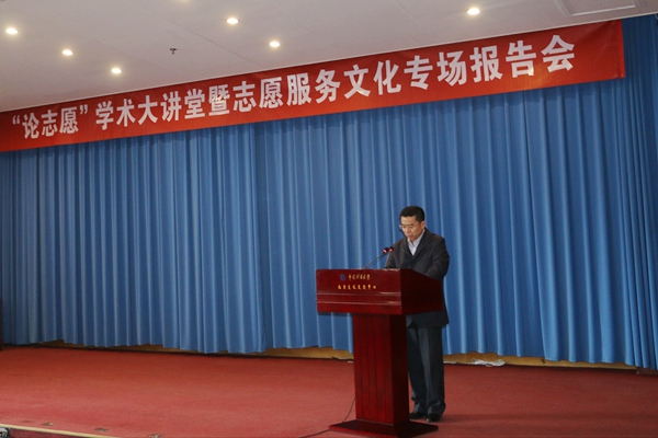 本网讯 3月25日下午,我校在交流中心报告厅举办“论志愿”学术大讲堂暨志愿服务文化专场报告会。首都文明办副主任郭新保,校党委副书记王忠强,北京社科院首都文化研究中心主任沈望舒,思政学院、校团委有关负责人出席报告会,各学院志愿服务代表参加报告会。
