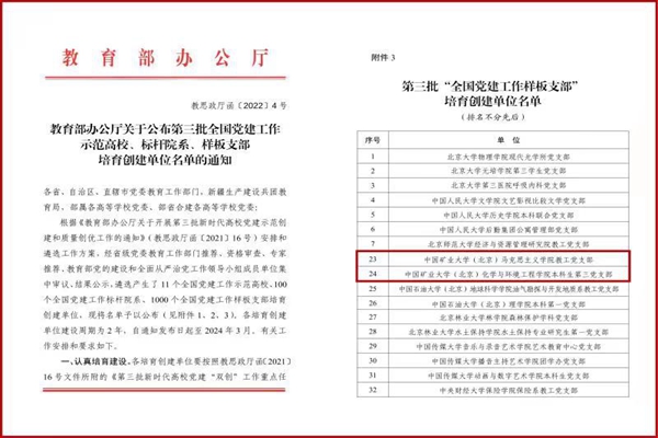 本网讯 近日,教育部下发了《关于公布第三批全国党建工作示范高校、标杆院系、样板支部培育创建单位名单的通知》(教思政厅函[2022]4号),经省级党委教育工作部门推荐、资格审查、专家评审、教育部党的建设和全面从严治党工作领导小组成员单位集中审议,遴选产生了11个全国党建工作示范高校、100个全国党建工作标杆院系、1000个全国党建工作样板支部。我校马克思主义学院教工党支部和化学与环境工程学院本科生第三党支部入选“全国党建工作样板支部”培育创建单位。这也是我校连续三年共5个支部入选“全国党建工作样板支部”培育创建单位。