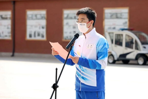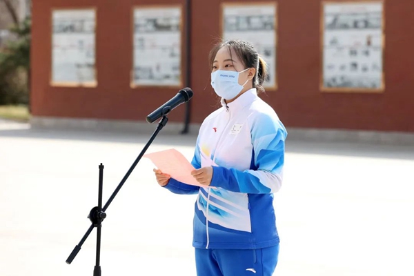 学生志愿者代表、场馆交通领域志愿者、应急管理与安全工程学院本科2019级闫立梅同学发言。她表示,有幸参与到志愿者选拔、培训、团建、服务的每一个环节,见证了志愿者们的成长与拼搏,特别感谢学校良好的驻地保障和亲如一家的志愿者友谊,在今后的学习生活中将会传播志愿者精神,讲好冬奥故事,贡献矿大力量!