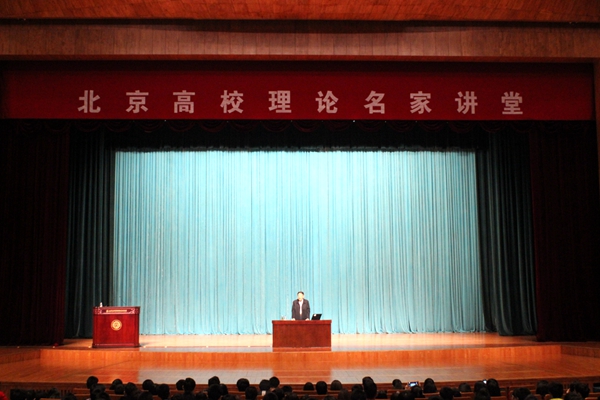 本网讯3月18日上午,北京高校理论名师大讲堂春季学期活动在北京大学百年讲堂举行。原中共河北省委书记叶连松同志作了主题为“关于京津冀协调发展问题”的报告。我校马克思主义青年读书会和各学院、各部门共50余名教师和学生,与12所大学近1600名师生共同聆听了报告。报告会由北京大学马克思主义学院院长孙熙国教授主持并作总结讲话。