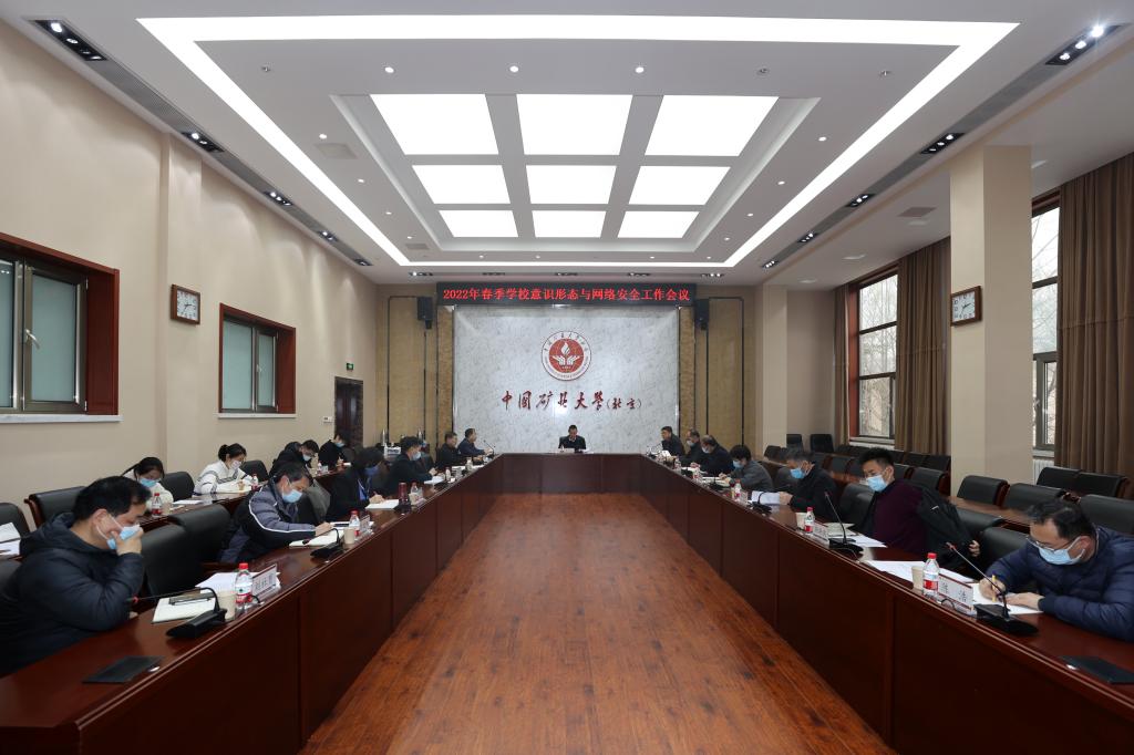 本网讯 3月24日下午,学校在一号办公楼200会议室召开2022年春季意识形态与网络安全工作会议,副校长崔希民出席会议并讲话,党委宣传部、党委统战部、网络与信息中心、学校各二级党组织负责人参加会议。