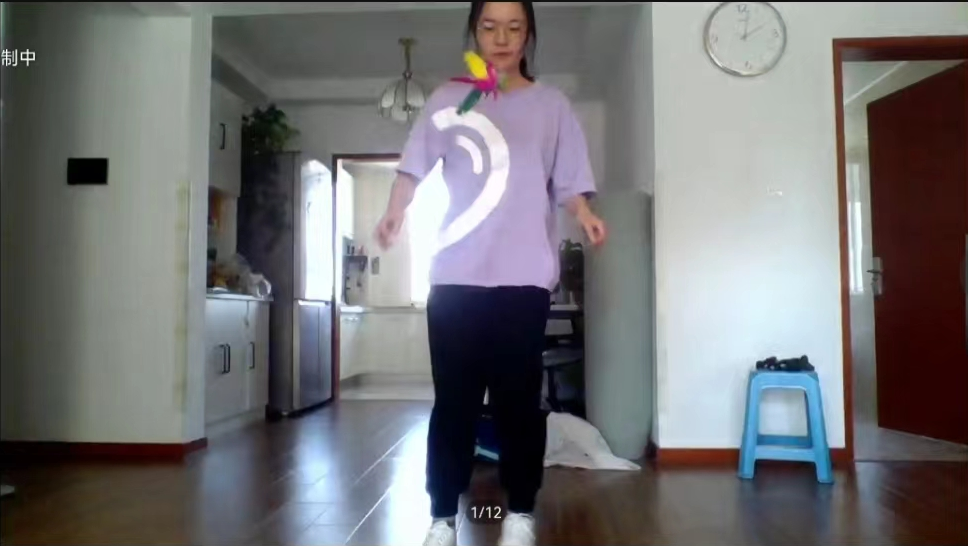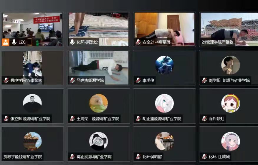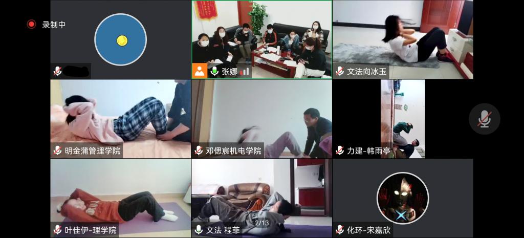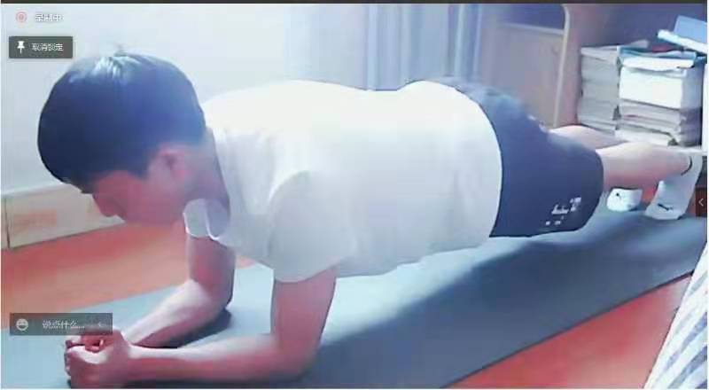 同学以线上直播形式参加体能挑战赛