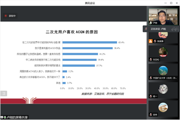 首先,卢刚老师用生动有趣的方式介绍了“Z世代”和“二次元空间”,并结合习近平总书记近期重要讲话精神和思想政治教育现状提出思考,即面对年轻学生群体,如何从青年特点出发,用学生喜闻乐见的方式做好思想政治教育。他认为,梳理当代青年信息获取、话语表达方式和特征,是讲好思政课一个重要的基础和前提。