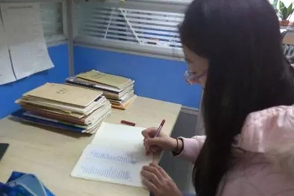 我校文法学院某大三学生的朋友圈里,有一条动态是这样的:“如果有一天,你在附中看到了我俩辛苦做的展板……”配图是两个女生跪在大展板上正埋头描摹……