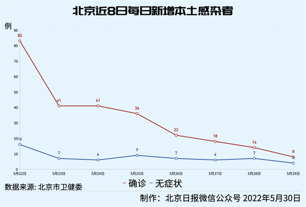 本网讯 5月29日0时至24时,北京新增8例本土确诊病例(含1例无症状感染者转确诊病例)和4例无症状感染者,无新增疑似病例;无新增境外输入确诊病例、疑似病例和无症状感染者。治愈出院50例。