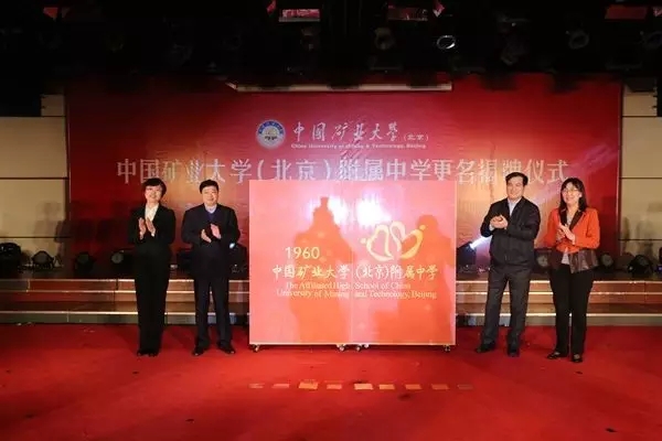 2015年4月2日,更名揭牌仪式在中国矿业大学(北京)科技会堂举行,中国矿业大学(北京)党委书记徐孝民出席并为其揭牌,校长杨仁树出席并致辞。在现场热烈的掌声中,矿大和附中崭新的一页由此揭开。