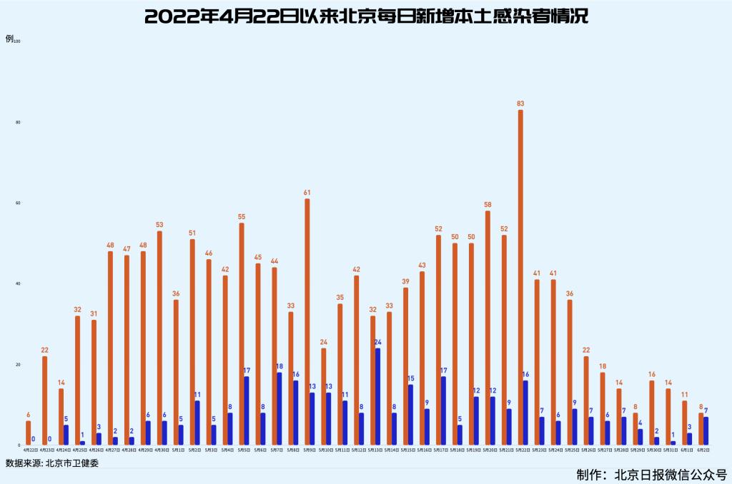 本网讯 6月2日0时至24时,北京新增8例本土确诊病例和7例无症状感染者,无新增疑似病例;无新增境外输入确诊病例、疑似病例,新增1例境外输入无症状感染者。治愈出院53例。