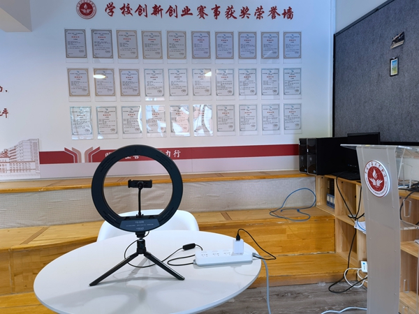 矿大(北京)的线下面试间里准备了补光灯等各种物品