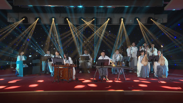 第三篇章“星辰为伴,奔赴远方”在《闪闪红星照未来》的歌声中走向高潮,各声部的巧妙结合奏出了强大力量。大学生舞蹈节银奖作品《向往》中坚定有力的目光、铿锵整齐的脚步声和一次次向前冲锋的身姿,绘就了顽强拼搏的斗争精神与对依归的恳切之情。大学生音乐节纪念奖作品《河西走廊之梦》用张弛有度的乐曲娓娓诉说,带我们领略到河西走廊绵长厚重的历史故事。大学生音乐节银奖歌曲《不忘初心》用悦耳旋律记录了伟大祖国的建设历程。