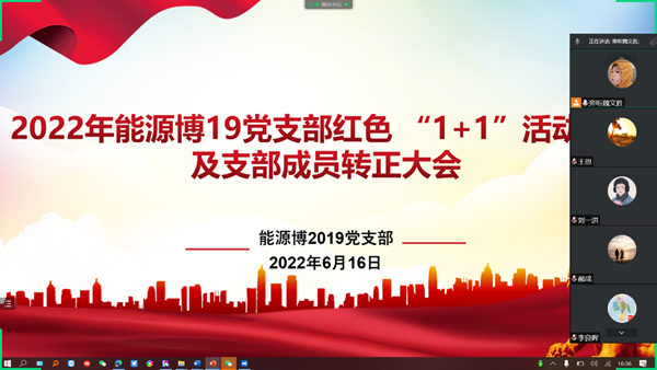 本网讯 6月16日下午,能源与矿业学院博士2019级学生党支部在综合楼318,开展红色“1+1”活动讨论及支部成员转正大会,副校长王家臣出席会议并讲话,带领支部成员重温了入党誓词,该支部20多名学生党员、发展对象和积极分子线上线下参加大会。支部书记魏文胜主持会议。