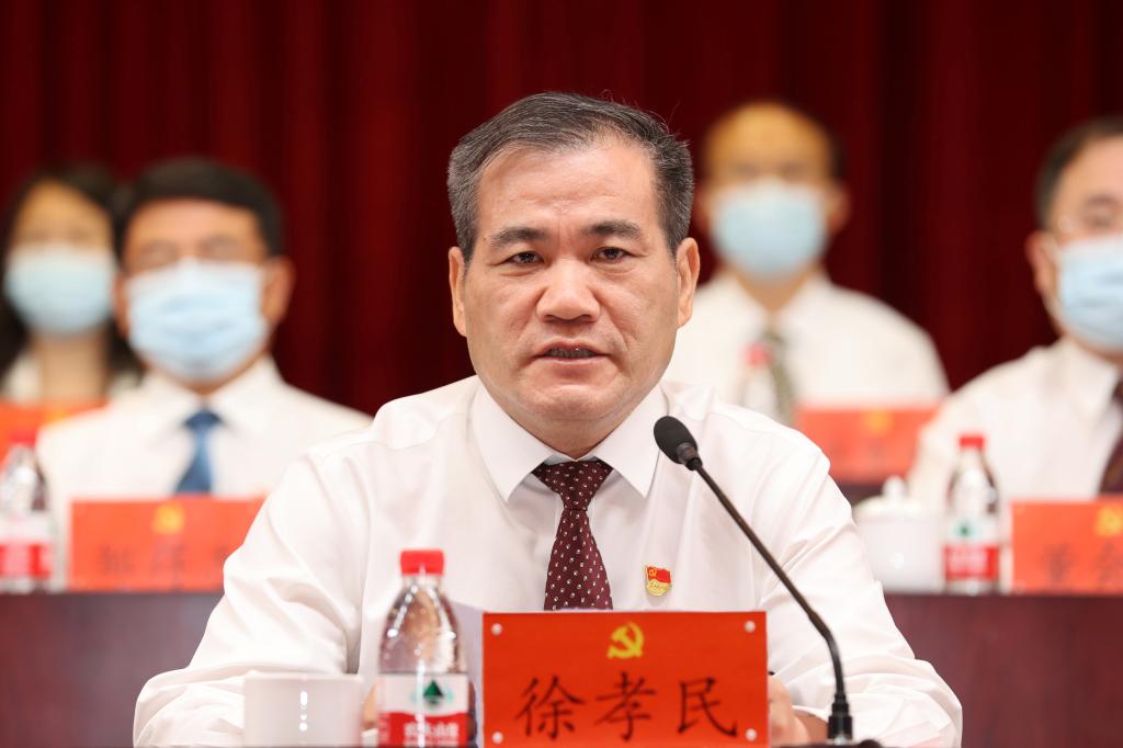 徐孝民表示,本次大会坚持以习近平新时代中国特色社会主义思想为指导,全面贯彻落实党的十九大和十九届历次全会精神,回顾了学校第三次党员代表大会以来的工作和经验,分析了在开启社会主义现代化建设新征程中所面临的机遇和挑战,擘画了未来五年学校党的建设和事业发展的美好蓝图。面对新形势、新要求,我们必须高举中国特色社会主义伟大旗帜,毫不动摇地坚持党对学校的全面领导。要从党的百年奋斗重大成就和历史经验中汲取磅礴力量,坚持底线思维,提高斗争本领,不断提高政治判断力、政治领悟力、政治执行力,持续推进全面从严治党纵深发展;要长期坚持和完善党委领导下的校长负责制,不断加强领导班子和干部队伍建设,进一步提高党委的领导水平和管理能力;要夯实学校党建工作基础,全面加强基层党组织建设,深化党建品牌建设,着力完善党建工作体系、提高党建工作水平;要全面深化党史学习教育,充分发挥全体党员的先锋模范作用,团结带领广大师生员工,凝心聚力、奋勇开拓,努力实现学校发展的新跨越。