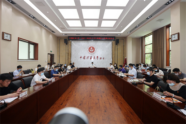 校党委常委、宣传部部长董会泽宣读了中国矿业大学(北京)2022年大学生暑期社会实践校级重点团队名单。