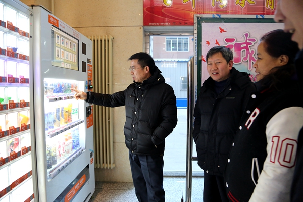 在科技楼,王忠强关注了寒假期间的教室开放情况,希望工作人员为留校准备考研的同学提供条件,尽可能满足他们的学习要求。在图书馆,检查队伍与图书馆负责人就寒假工作安排进行了交流,并参观了正在图书馆举办的力建学院学生的作品展。在学生食堂,王忠强了解了当天的主食和菜品,要求工作人员做好安全卫生工作,保证师生的身体健康。最后,检查队伍来到学生宿舍楼。王忠强嘱咐工作人员在寒假期间要更加努力工作,为留校学生的学习、生活提供便利。他还特意了解了宿舍楼新设的饮品、百货售卖机,就价格等问题进行了交流。