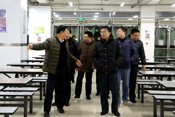 本网讯 为做好2017年寒假及春节期间的校园安全稳定工作,1月10日下午,校党委副书记王忠强带领有关部门工作人员,深入科技楼、图书馆、学生食堂、学生宿舍等区域检查安全稳定工作,重点了解了各部门对寒假留校学生的安排,并就有关工作进行了部署。