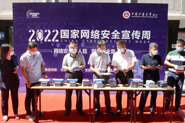 本网讯 9月5日-11日是2022年“国家网络安全宣传周”,9月6日,学校举行“国家网络安全宣传周”校园日主题活动,学校网络安全和信息化领导小组副组长、副校长崔希民,校党委副书记安宇来到学生中间,向同学们宣传《中华人民共和国网络安全法》等法律法规,向师生员工发放宣传材料,普及网络安全知识。此次活动由学校党委宣传部、党委学生工作部、党委保卫部、校团委和网络与信息中心等五部门联合主办。