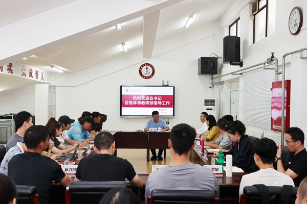 本网讯 9月14日下午,校党委副书记安宇到体育教研部开展调研并召开班子座谈会,体育教研部直属党支部书记邢鹏,主任杨三军及全体教职工参加调研会议,会议由邢鹏主持。