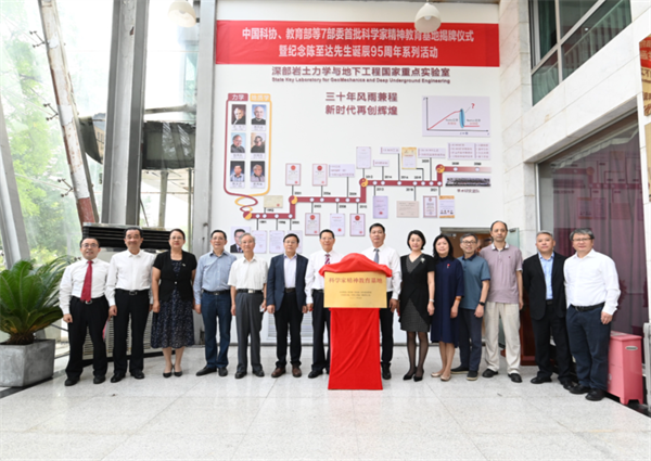 2022年9月12日,是我国著名力学家、中国矿业大学(北京)教授陈至达先生诞辰95周年,为弘扬陈至达先生爱国求实,创新拼搏、团结奉献的科学家精神,响应2022年全国科学道德和学风建设宣传月活动号召,由中国科学技术协会指导、中国岩石力学与工程学会主办,中国矿业大学(北京)深部岩土力学与地下工程国家重点实验室承办的“中国科协、教育部等 7 部委首批科学家精神教育基地揭牌仪式暨纪念陈至达先生诞辰 95 周年系列活动”隆重召开。中国科协宣传文化部宋玉荣副部长,中国科协学会服务中心党委书记、科技社团党委副书记王婷,中国科协科技社团党委副书记刘桂荣,中国科学院院士、深部国家重点实验室主任、中国岩石力学与工程学会党委书记、理事长、中国矿业大学(北京)何满潮教授,中国科学院院士魏悦广教授,中国工程院院士谢和平教授,中国岩石力学与工程学会党委副书记、中国工程院院士李术才教授,中国科学院郑晓静院士、周又和院士,中国矿业大学(北京)原副校长安里千教授、姜耀东教授,中国石油大学(北京)陈勉教授,中国矿业大学(北京)党委常委、副校长崔希民教授,陈至达先生学生及家属,学会秘书处工作人员,实验室老师等30余人参加了活动。